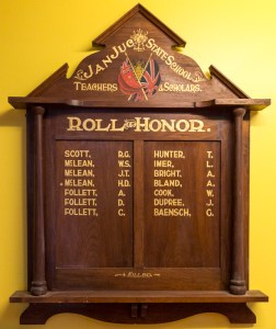 The school honor roll for those who had gone from the school on active service was unveiled by Mr. J.H.Lister, M.H.R, on Tuesday 9th December, 1919.
