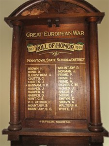 The Public Hall was packed on Friday, December 21st last, the occasion being the unveiling of the local school and district Honor Roll. Much disappointment was felt at the unavoidable absence of Mr. Gibson, M.H.R , and Mr. McDonald, M.L.A., both of whom had promised to be present, but at the last moment found they could not do so. Both sent apologies, also Mr. Parker, inspector of schools for the district. The evening’s programme took the form of & concert and supper, the proceeds of which will go towards the school flower day fund. The first part of the concert was provided wholly by the school children, tutored by Mr. and Mrs. Maher. During the interval the Honor Board was unveiled by Mr. W. A. Mountjoy, president of the Shire of Winchelsea, who also presided at the concert. Mr. Mountjoy dwelt at some length on the doings of the boys at the war, and the splendid manner in which Pennyroyal and district had responded to the call. Mr. Edgar Mountjoy and Chaplain Love also spoke. The board contains26 names, four of whom mads the extreme sacrifice. A photograph of the board will appear in the. ‘News of the Week’ shortly. Geelong Advertiser, 27 December 1919